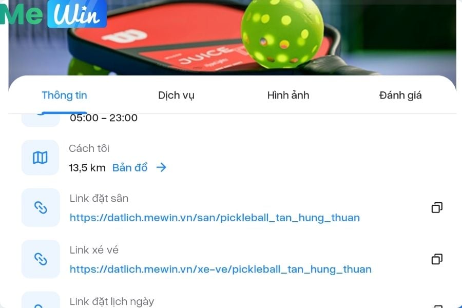 Để trải nghiệm sân mọi người có thể đặt lịch tại: https://datlich.mewin.vn/san/pickleball_tan_hung_thuan
