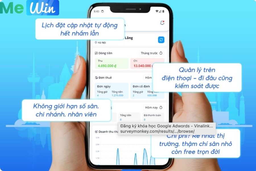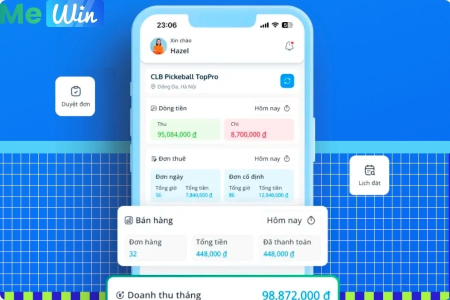 Mewin - phần mềm quản lý sân bóng chuyên nghiệp.