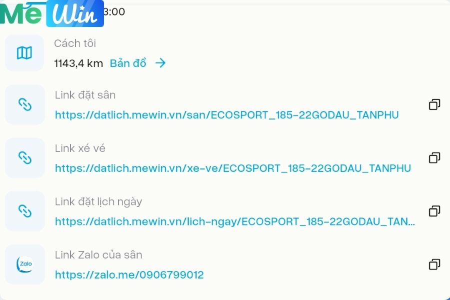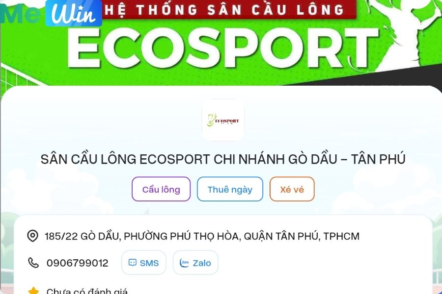 Để trải nghiệm sân quý khách có thể đặt lịch tại: https://datlich.mewin.vn/san/ECOSPORT_185-22GODAU_TANPHU
