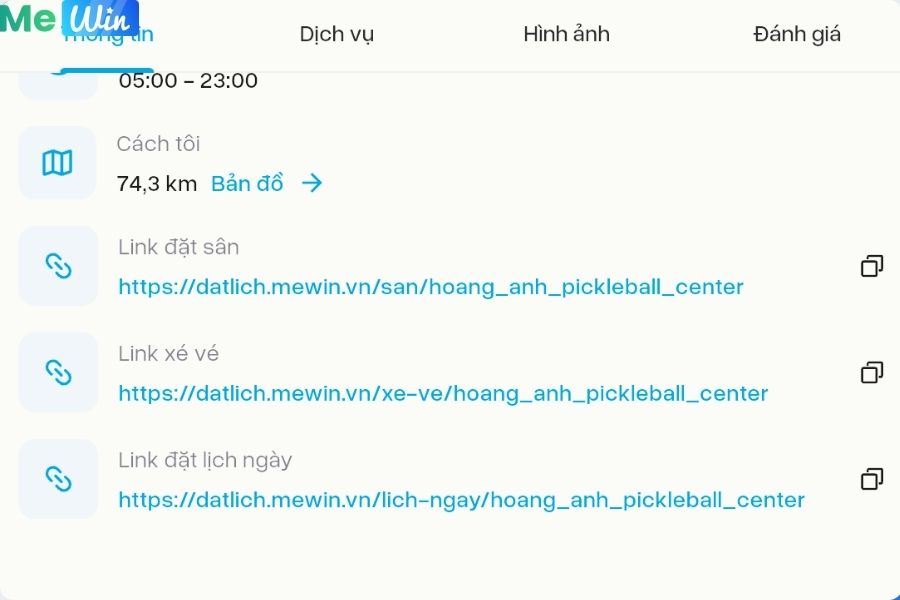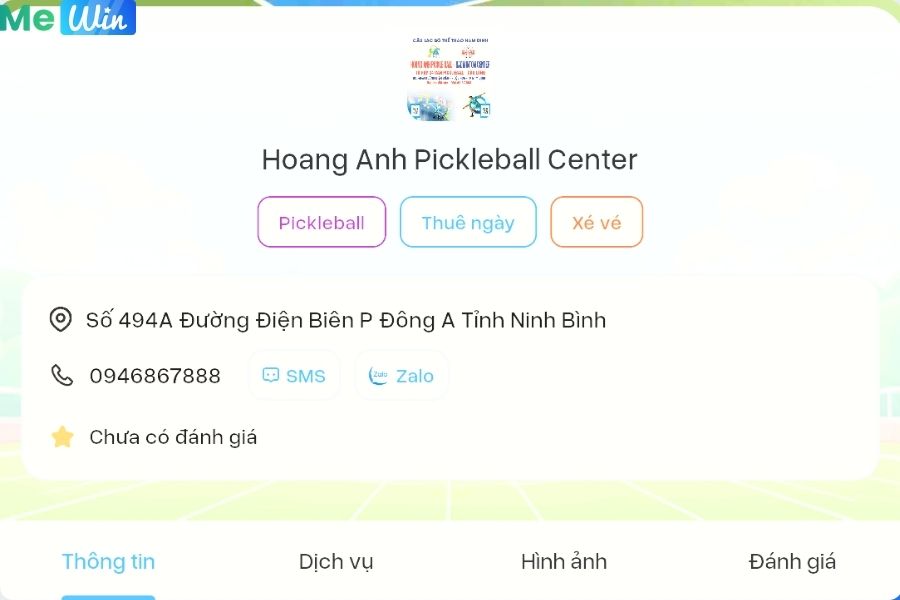 Để trải nghiệm hãy đặt lịch tại: https://datlich.mewin.vn/san/hoang_anh_pickleball_center