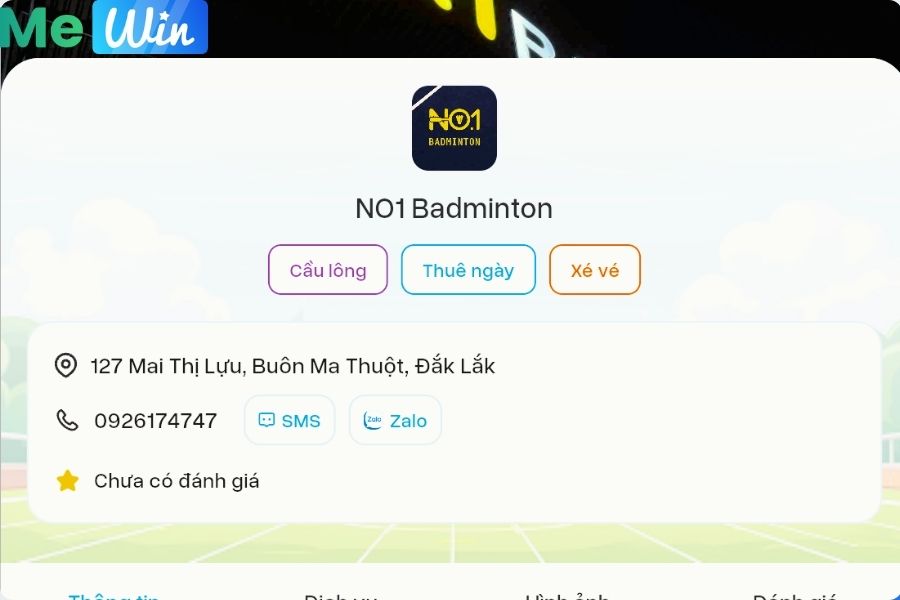Dù bạn là người mới hay cao thủ, NO.1 Badminton luôn sẵn sàng: dịch vụ thuê dụng cụ tiện lợi, không gian thoải mái cho nhóm, lịch cố định cho CLB. Với Mewin hỗ trợ, sân càng chuyên nghiệp: đặt sân nhanh, vận hành trơn tru, không lo trùng lịch – để bạn chỉ tập trung vào niềm vui trên sân.