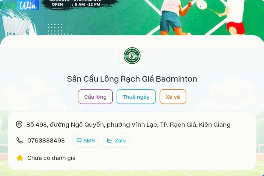 Để trải nghiệm sân hãy đặt lịch tại: https://datlich.mewin.vn/san/san_cau_long_rach_gia_badminton