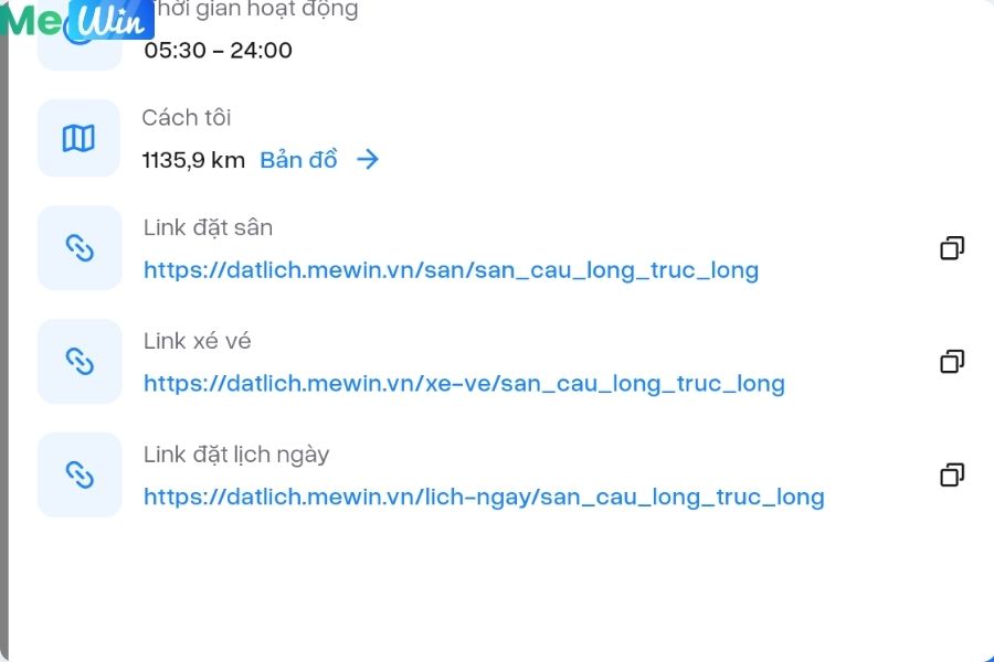 Để đặt sân khách hàng có thể thao tác trên https://datlich.mewin.vn/san/san_cau_long_truc_long