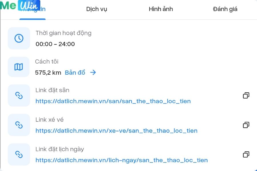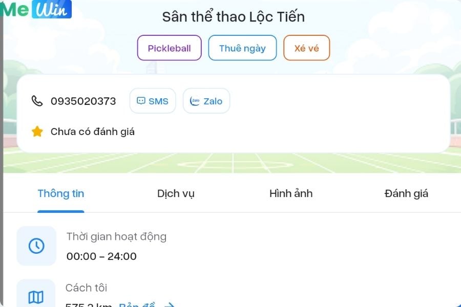 Thông qua hệ thống Mewin, người chơi tại Huế và các khu vực lân cận có thể tìm và đặt sân Lộc Tiến dễ dàng hơn bao giờ hết.