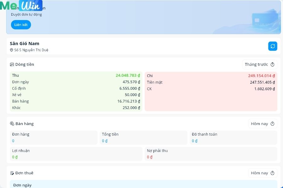 Sân chuyên nghiệp: Báo cáo ngày/tuần, dự báo mùa thấp điểm – điều chỉnh kịp thời. Với ứng dụng Mewin dễ dàng dự báo doanh thu, tăng lợi nhuận