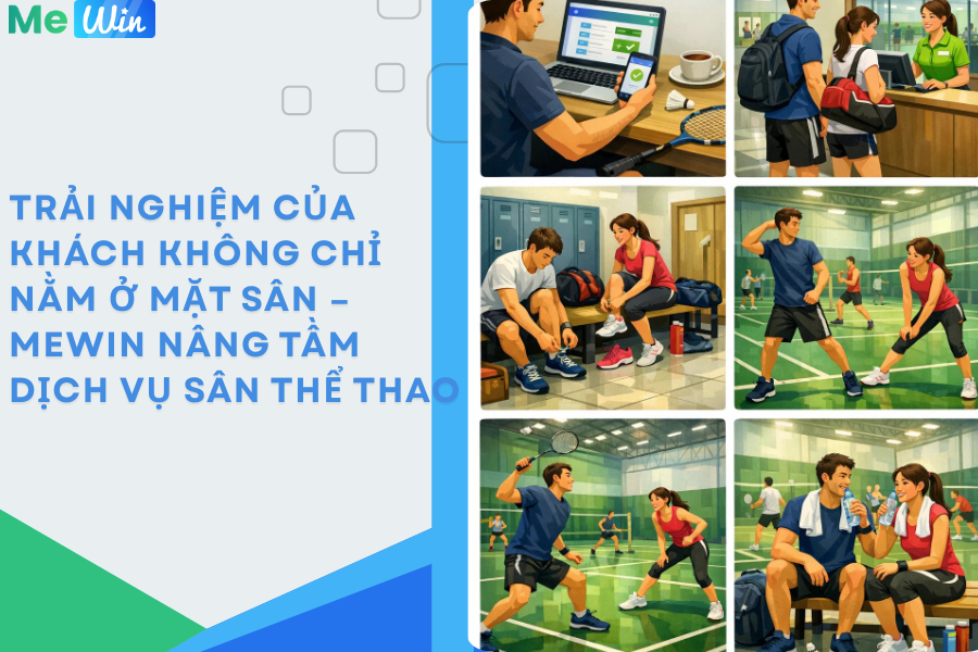 Trải nghiệm khách hàng sân thể thao không chỉ ở mặt sân! Khám phá cách Mewin – ứng dụng quản lý sân hiện đại giúp đặt lịch online nhanh chóng, tránh trùng giờ, tăng doanh thu và giữ chân khách hàng lâu dài.